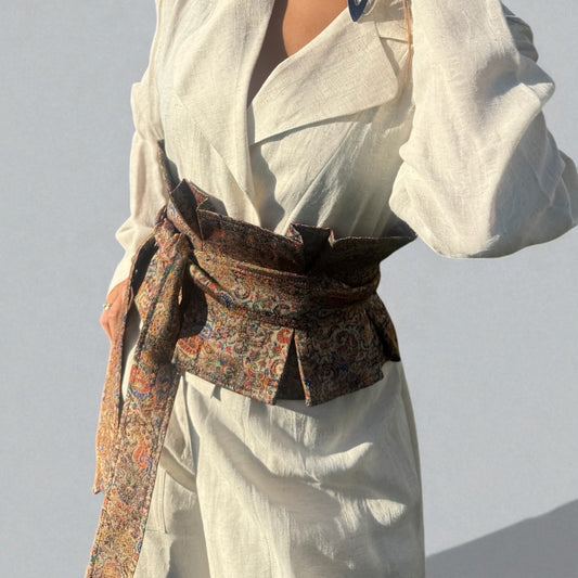 This collection is a tribute to legacy — where every piece carries the quiet strength of Persian artistry. From the intricate weave of ترمه (Termeh) to thoughtful silhouettes, each design is a blend of heritage and modern refinement.